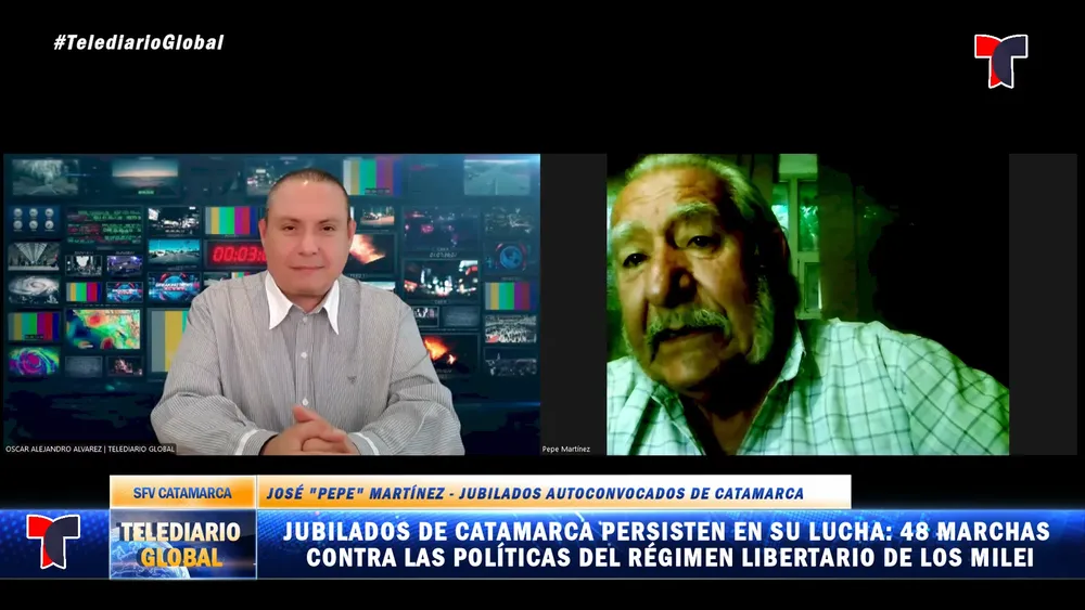 En una entrevista exclusiva con el periodista Oscar Alejandro Álvarez para Telediario Global, José "Pepe" Martínez, jubilado fundador de la agrupación "Jubilados Autoconvocados de Catamarca", se refirió a la marcha de todos los miércoles en contra de las políticas del régimen de los Milei, a la marcha ya número 48 y al primer año de protesta en defensa de los derechos de todos los jubilados y jubiladas. Martínez expresó su frustración e impotencia ante la falta de respuestas por parte del régimen de La Libertad Avanza, que hoy le toca administrar los intereses de todos los argentinos, criticando el veto al aumento de los jubilados y el uso de las fuerzas de seguridad para reprimir las protestas.