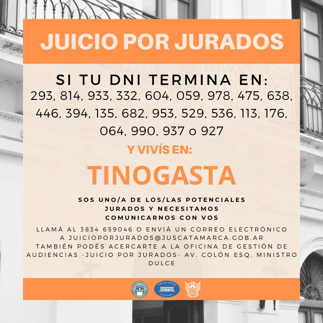 Finalmente, anunció que el próximo 14 de abril se iniciará un nuevo juicio por jurado en Tinogasta, con citaciones en curso y paridad de género en la conformación del tribunal: seis hombres y seis mujeres, más dos suplentes. “Le digo a la sociedad que por favor ejerzan su derecho a ser jueces populares”, concluyó.